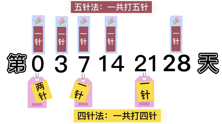 目前,狂犬病疫苗接種有四針劑法和五針劑法兩種注射方式,兩種方式均可產(chǎn)生保護(hù)效果。煙臺地區(qū)普遍使用四針劑注射法,即當(dāng)日注射兩針,第7天、第二十一天分別注射一針狂犬病疫苗的方法。