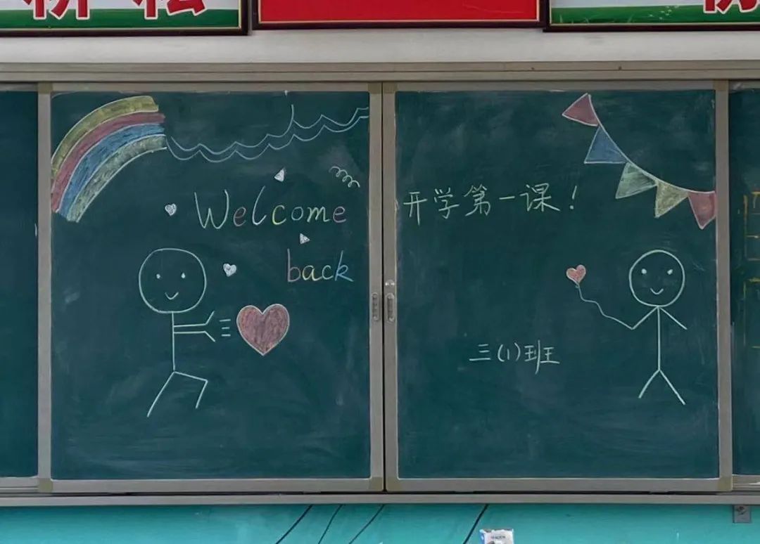 ● 開學(xué)了,菏澤高新區(qū)馬嶺崗鎮(zhèn)中心小學(xué)教師們?yōu)榉敌5暮⒆觽兙睦L制了一幅幅活潑可愛的黑板畫,展現(xiàn)出他們對學(xué)生們濃濃的愛,也把久別重逢的喜悅詮釋的淋漓盡致。