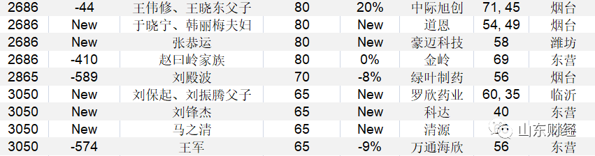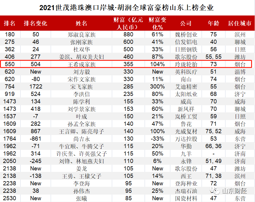 從山東上榜情況看,共有32位企業(yè)家上榜,其中,魏橋創(chuàng)業(yè)的鄭淑良家族以880億元財富位居上榜山東企業(yè)家首位,信發(fā)鋁電的張剛家族以600億元位居山東第二位,日照鋼鐵杜雙華則以500億元位居上榜山東企業(yè)家第三位。
