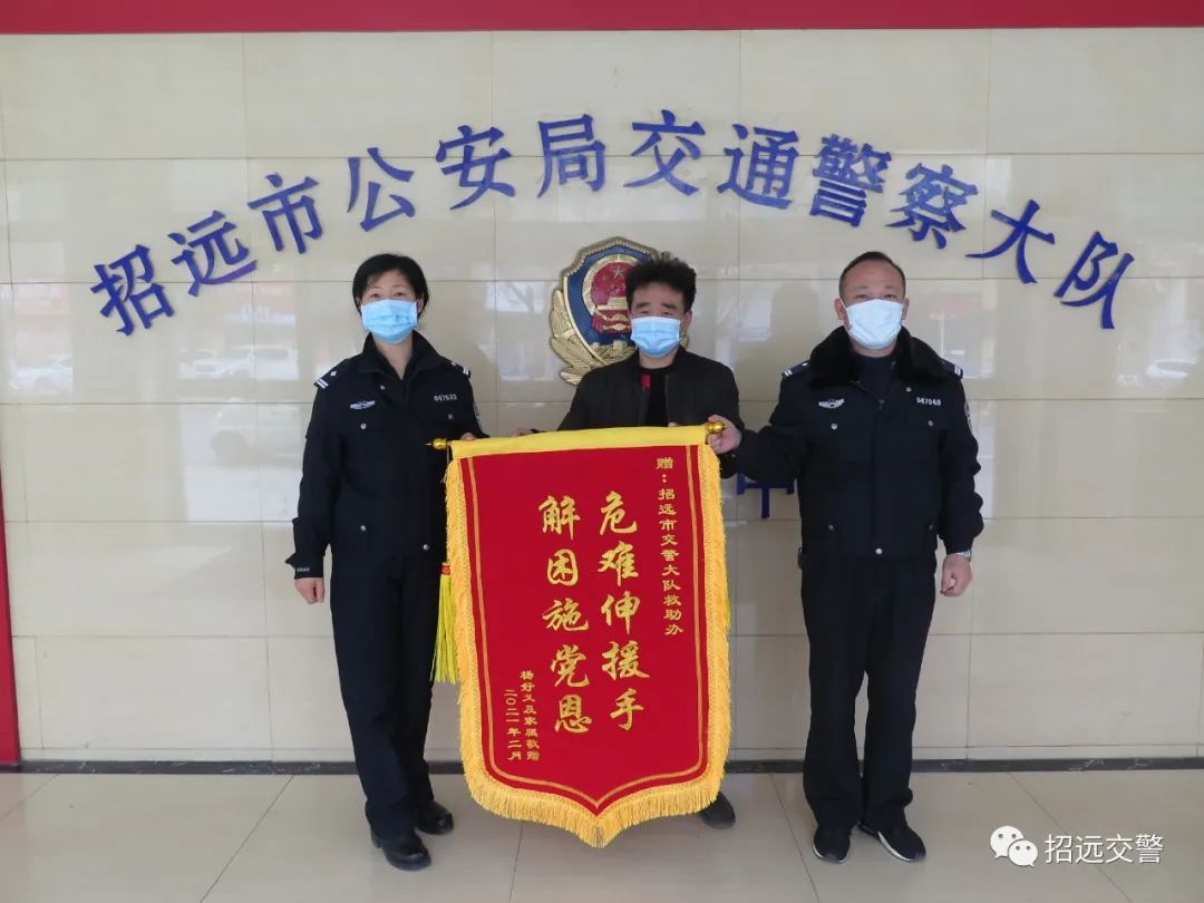 3月3日上午,招遠市群眾楊某某親自將一面印有“危難伸援手 解困施黨恩”的錦旗送到招遠市公安局交通警察大隊道路交通事故救助辦公室,“感謝黨和國家出臺的道路交通事故社會救助基金好政策,感謝招遠市公安局交通警察大隊道路交通事故救助辦公室民警一心為民,犧牲休息時間,積極為其父親申請救助基金?!?/span>