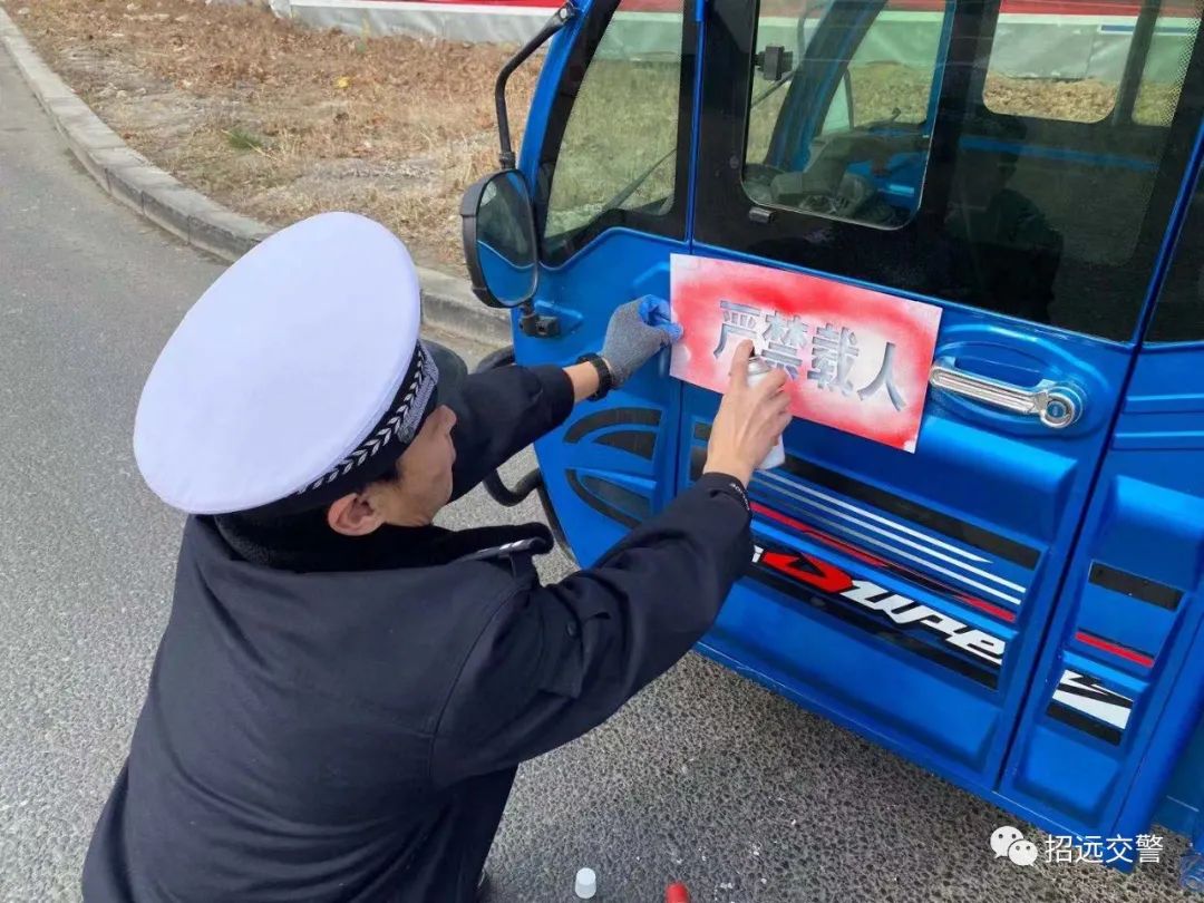 大隊安排民警聯(lián)合鎮(zhèn)村干部、警務(wù)助理等,落實屬地責(zé)任,在三輪車顯著位置噴涂“嚴(yán)禁載人”警示標(biāo)語,要求乘車人拒絕乘坐三輪車,三輪車駕駛者嚴(yán)禁違法載人;路面執(zhí)勤民警、村勸導(dǎo)員等繼續(xù)為轄區(qū)農(nóng)用三輪車免費(fèi)粘貼反光標(biāo)識。3月以來,共為4465輛三輪車噴涂警示標(biāo)語、粘貼反光貼。
