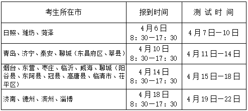 日前,省教育招生考試院發(fā)布了《關(guān)于做好山東省2021年普通高等學(xué)校體育專業(yè)招生有關(guān)工作的通知》(點(diǎn)擊文末“閱讀原文”,即可查看原文件)。為了考生更全面地了解考試相關(guān)信息,考試院對(duì)本次體育專業(yè)考試工作進(jìn)行了解讀,接下來(lái)隨小編一起了解~我省2021年高校招生體育專業(yè)考試什么時(shí)間進(jìn)行?我省體育專業(yè)考試時(shí)間集中在2021年4月6日—22日。以市、縣(市、區(qū))為單位分4批參加考試。各市、縣(市、區(qū))具體批次如下表:另外,對(duì)兼報(bào)體育單招的考生,將統(tǒng)一安排在第一批進(jìn)行考試。體育專業(yè)考試的考試地點(diǎn)在哪里?體育專業(yè)考試安排在山東師范大學(xué)(千佛山校區(qū))進(jìn)行,考生需從學(xué)校西門內(nèi)報(bào)到(經(jīng)十路與歷山路交叉口北行100米路東)。體育專業(yè)考試內(nèi)容包括基本素質(zhì)考試和專項(xiàng)考試。其中,基本素質(zhì)考試項(xiàng)目為100米、立定跳遠(yuǎn)和原地推鉛球;專項(xiàng)考試可在田徑(不包含100米)、籃球、排球、足球、乒乓球、體操、武術(shù)等項(xiàng)目中選擇1項(xiàng)。
