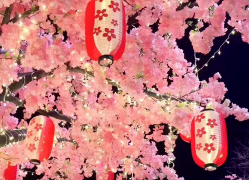 日系浪漫的櫻花樹、櫻花燈籠、