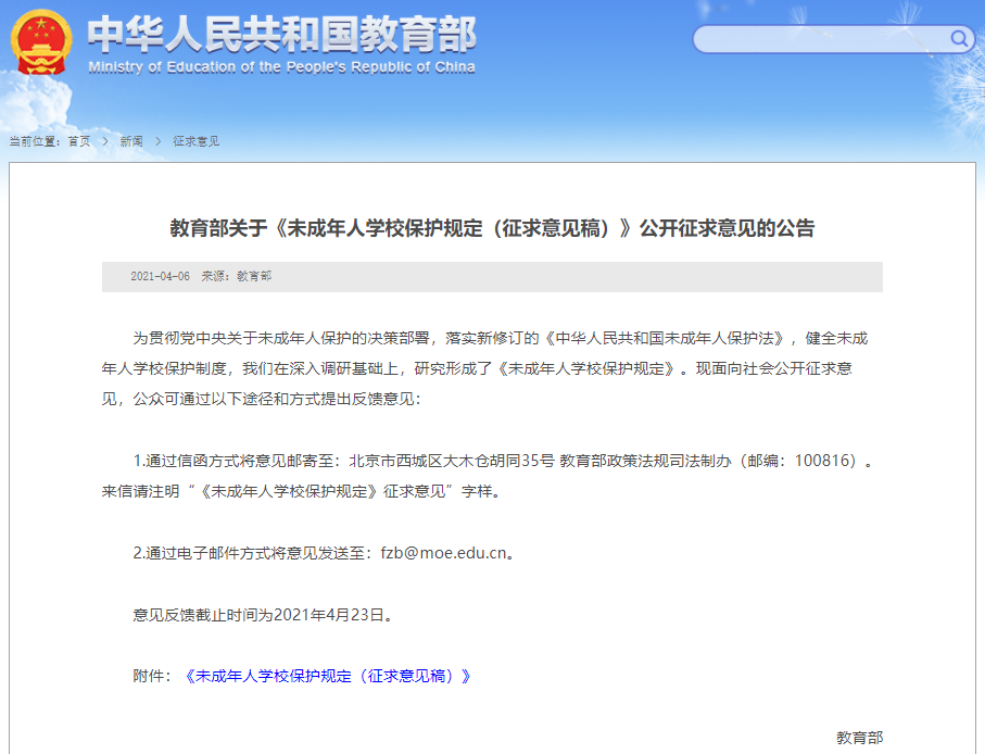 《未成年人學(xué)校保護規(guī)定(征求意見稿)》