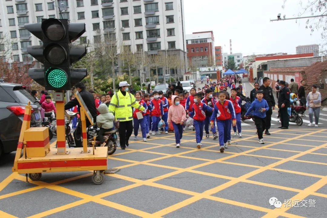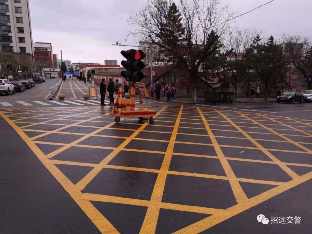 為保障中小學(xué)生上、放學(xué)安全,招遠交警大隊會同教育部門多次實地現(xiàn)場調(diào)研,除每天上、放學(xué)高峰安排警力到現(xiàn)場疏導(dǎo)外,于4月12起增設(shè)了移動紅綠燈,施劃了交通標(biāo)志標(biāo)線等,有效維護校園周邊交通秩序。