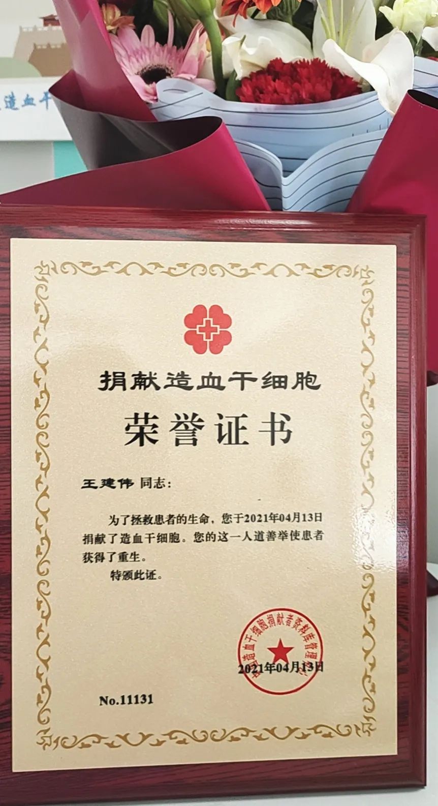 當(dāng)天,經(jīng)過四個(gè)多小時(shí),王建偉完成了造血干細(xì)胞采集。談到捐獻(xiàn)過程,王建偉說:“都還好,沒什么特別的。就是四個(gè)多小時(shí)躺著一動(dòng)不動(dòng)有點(diǎn)兒難受,胳膊都是酸麻的?!?/span>
