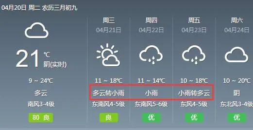 明后兩天,我市云量逐漸增多,南風(fēng)為主,風(fēng)力稍大,氣溫略有下降。22日開始,受暖濕氣流影響,我市有一次較為明顯的降水過(guò)程。
