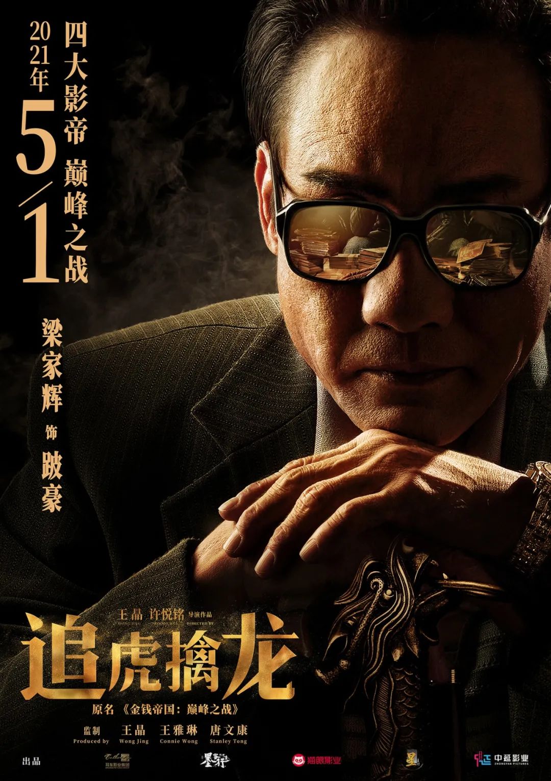 古天樂(lè)緊扣扳機(jī),眼神堅(jiān)毅,做好隨時(shí)開(kāi)戰(zhàn)的準(zhǔn)備,決心要與黑暗勢(shì)力斗爭(zhēng)到底;梁家輝大半邊臉掩藏在黑暗中,猶如一只靜靜埋伏的毒蛇,墨鏡上倒映出他面前小山般堆起的現(xiàn)金和徐樂(lè)的身影,一個(gè)龐大的金錢(qián)帝國(guó)不言而喻;吳鎮(zhèn)宇則不急不慢地享用著雪茄,神情莫測(cè),似乎已有籌謀;林家棟皺著眉頭,專心地聽(tīng)著什么,關(guān)鍵線索似乎就要呼之欲出。
