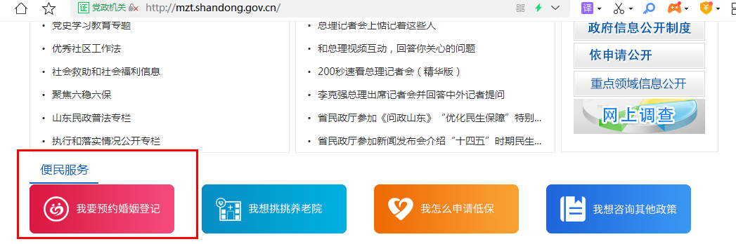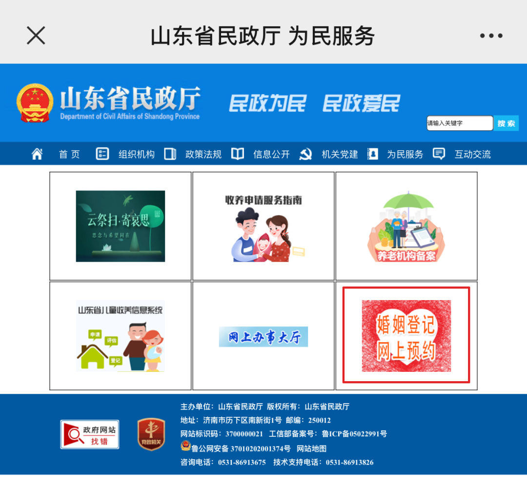 中的“婚姻登記網(wǎng)上預(yù)約”進(jìn)行預(yù)約