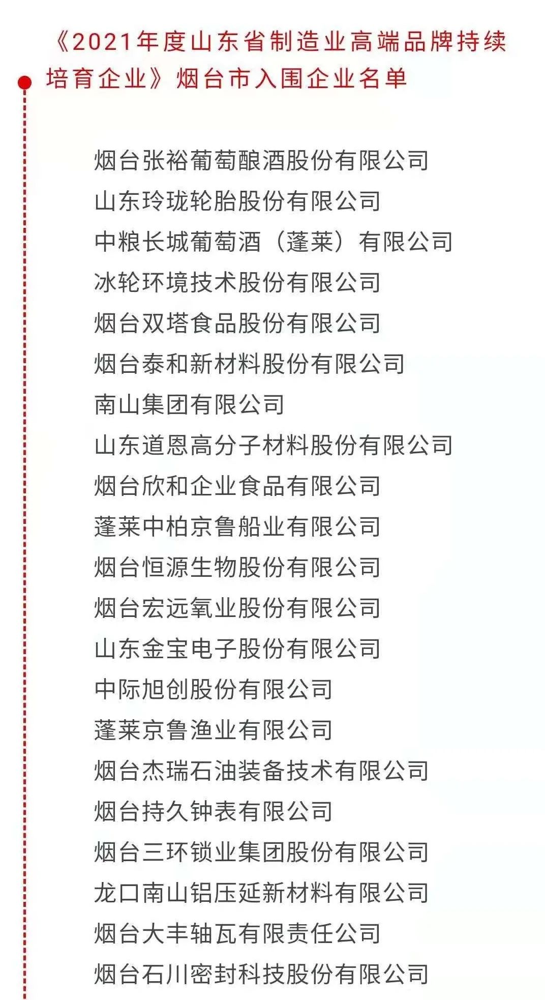 入選“2021年度山東省制造業(yè)高端品牌持續(xù)培育企業(yè)”榜單的是: