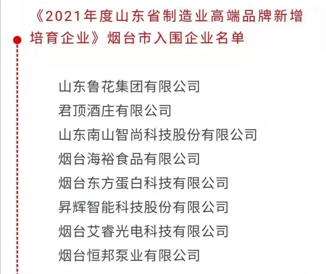 入選“2021年度山東省制造業(yè)高端品牌新增培育企業(yè)”榜單的是: