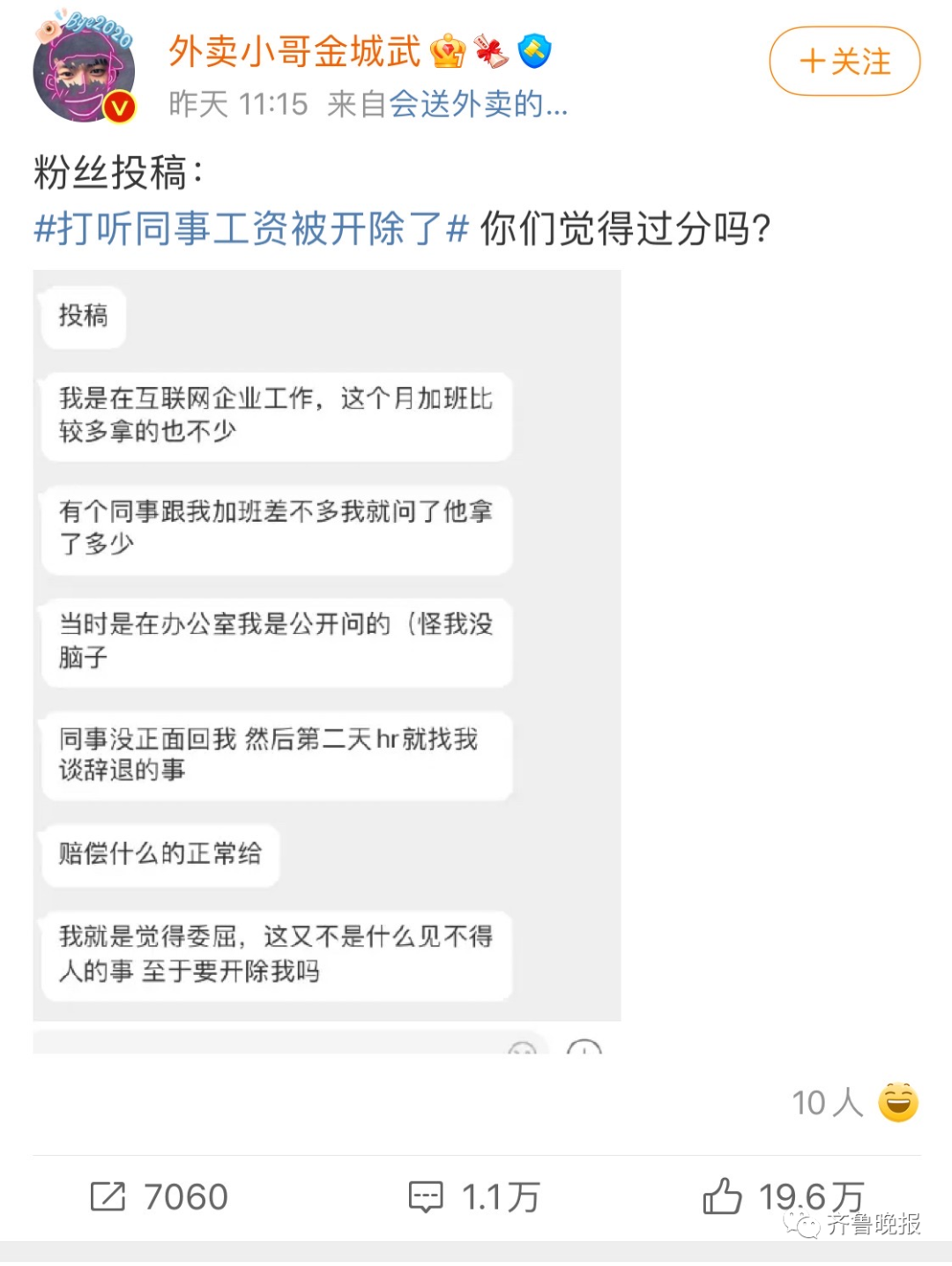 網(wǎng)友自述打聽同事工資被開除沖上熱搜!招遠的朋友,你怎么看?