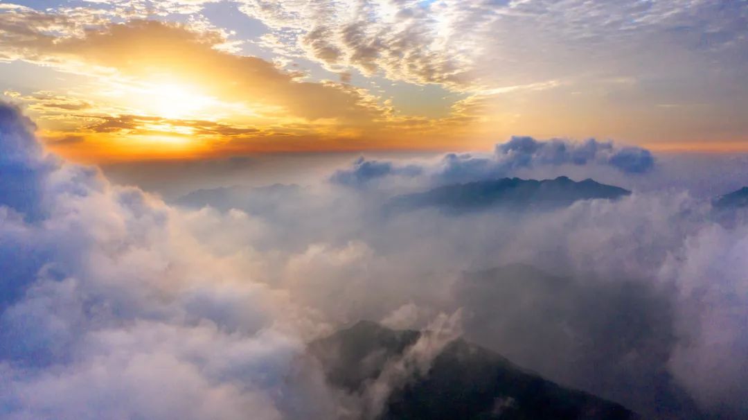 連日來(lái),氣象原因所致,羅山云霧重生,云蒸霞蔚。山里的云由谷底生發(fā),慢慢升騰,縹緲繚繞于山腰,緩緩移動(dòng),隨風(fēng)向不斷變幻,讓你有種置身于世外的感覺(jué)。美麗的晨霧就像大山的女兒,親吻著母親的面頰;在初陽(yáng)的映照下又像似五彩斑斕的羽紗,輕輕地披在大山的身軀,如夢(mèng)如幻、如詩(shī)如畫,使人有種飄然乘云欲歸的感覺(jué);云霧在山間游動(dòng),又像畫家潑墨,一幅幅丹青妙景自然生成。