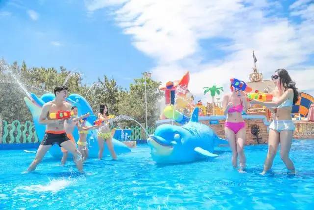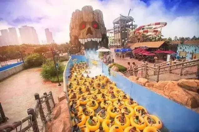 膠東半島特色的潮汐冒險式海嘯沖浪漂河,每兩分鐘都有怒濤翻滾的海浪從骷髏的口中噴射而出,龐大的水泡群和撲面而來的細密水霧,讓人瞬間透心清涼。