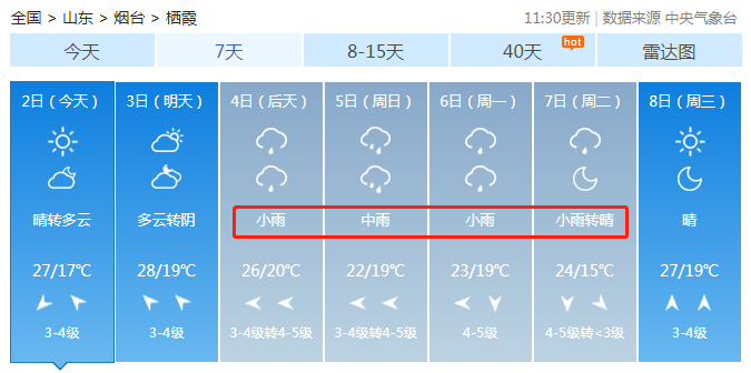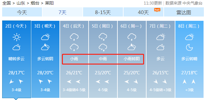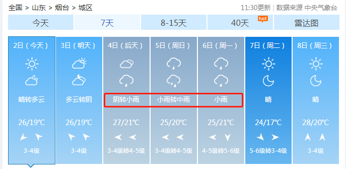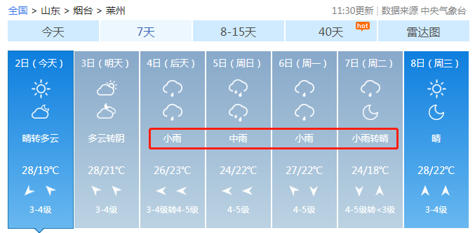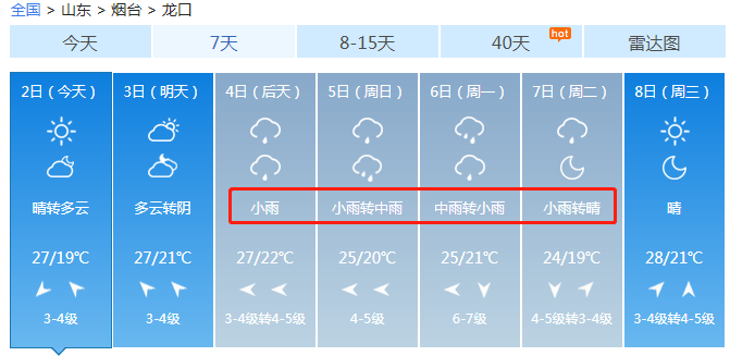 接下來看看煙臺(tái)各區(qū)市天氣情況