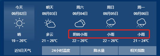 3日白天,晴轉(zhuǎn)多云;東南風(fēng)短時(shí)東北風(fēng)3-4級(jí);最低氣溫19℃。最高氣溫26℃。