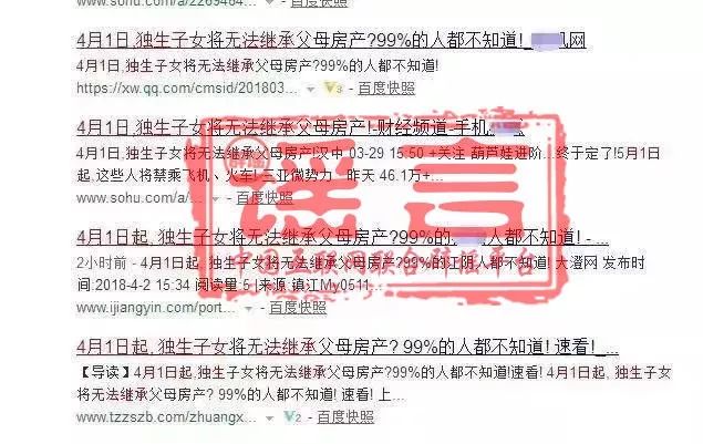 全宇宙只有不到1%的人點(diǎn)擊上方進(jìn)入招遠(yuǎn)信息港你真是個(gè)特別的人精彩內(nèi)容近期,有網(wǎng)友留言詢問(wèn)“2020年起獨(dú)生子女將無(wú)法繼承父母房產(chǎn)”這條信息是真是假?據(jù)查,此條信息早就在網(wǎng)絡(luò)上熱傳過(guò),原文標(biāo)題為《4月1