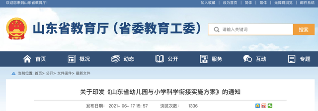 6月17日,山東省教育廳網(wǎng)站發(fā)布《關(guān)于印發(fā)山東省幼兒園與小學(xué)科學(xué)銜接實施方案的通知》,通過幼兒園大班下學(xué)期設(shè)立入學(xué)準(zhǔn)備期、一年級上學(xué)期設(shè)置為入學(xué)適應(yīng)期等方式,建立幼兒園與小學(xué)的科學(xué)銜接。2021年秋季