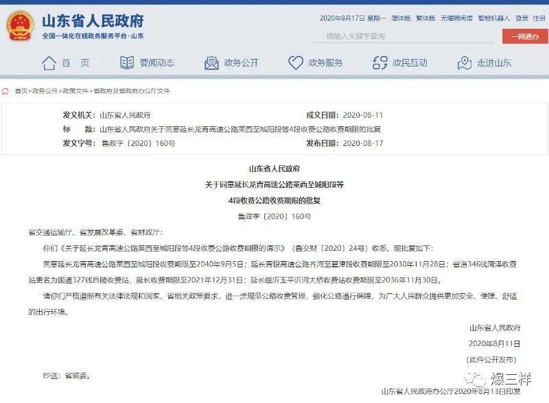 全宇宙只有不到1%的人點擊上方進入招遠信息港你真是個特別的人8月17日,山東省政府網(wǎng)站發(fā)布《關(guān)于同意延長龍青高速公路萊西至城陽段等4段收費公路收費期限的批復》。批復明確,龍青高速公路萊西至城陽段等4段