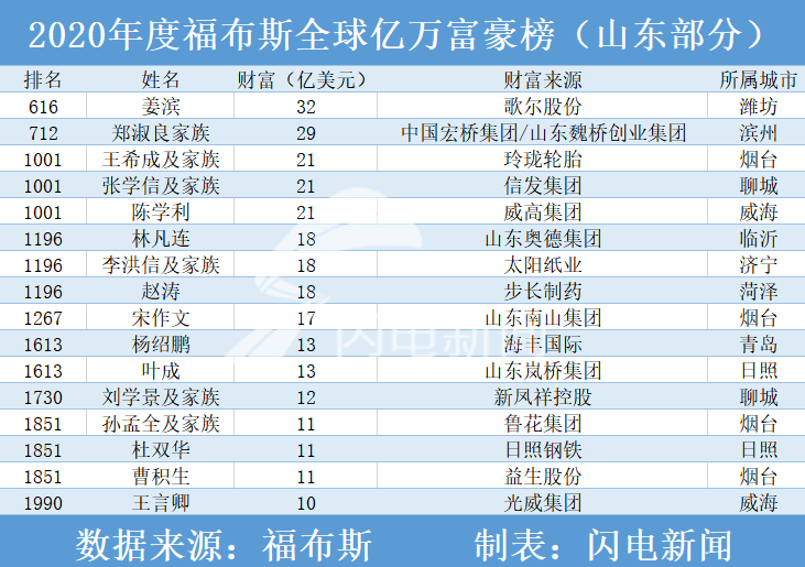 全宇宙只有不到1%的人點(diǎn)擊上方進(jìn)入招遠(yuǎn)信息港你真是個(gè)特別的人4月7日晚間,福布斯發(fā)布第34期全球億萬(wàn)富豪榜。在這份榜單中,全球共有2095位億萬(wàn)富豪上榜,山東省共計(jì)16位富豪上榜,其中咱煙臺(tái)有4位入選