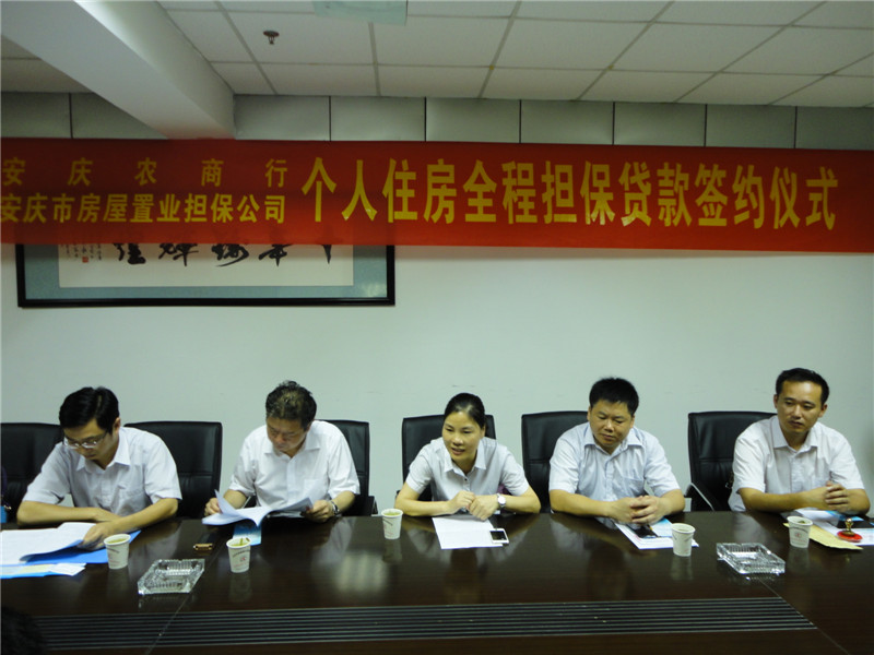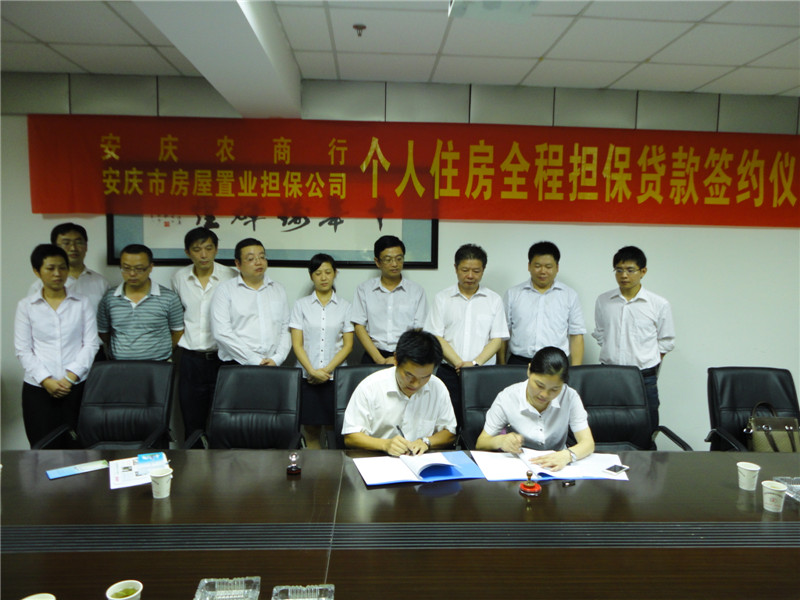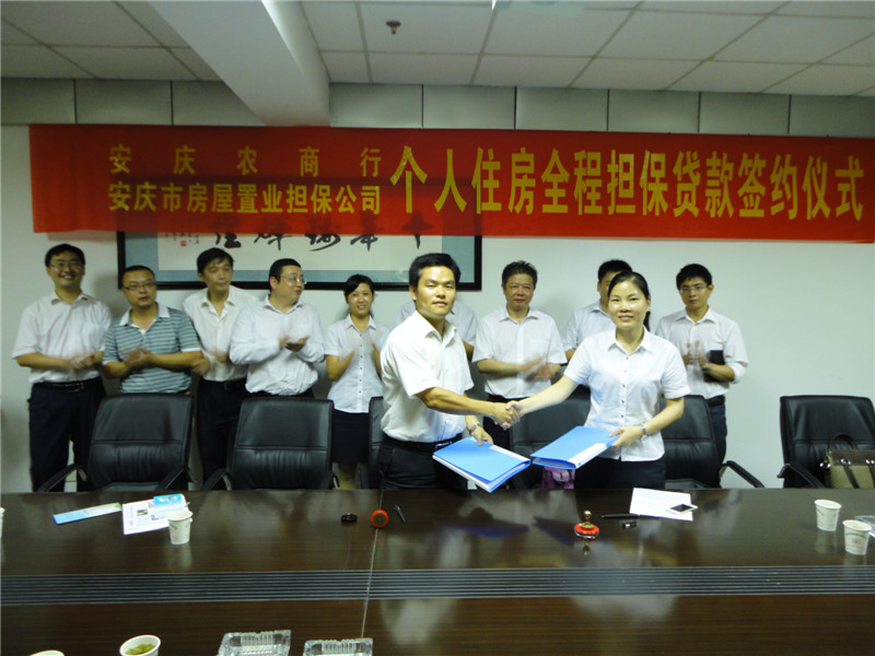為促進(jìn)安慶房地產(chǎn)市場健康平穩(wěn)發(fā)展,滿足我市居民居住性和改善性購房按揭貸款需求,安慶市房屋置業(yè)擔(dān)保公司不斷拓寬思路,創(chuàng)新業(yè)務(wù)品種,9月28日與安慶獨(dú)秀農(nóng)商行簽訂了《個(gè)人住房按揭全程擔(dān)保貸款合作協(xié)議》。安慶獨(dú)秀農(nóng)商行董事長韋道德、行長李春香,安慶市房屋置業(yè)擔(dān)保公司董事長、總經(jīng)理沈軍、監(jiān)事長、支部書記劉芳等合作雙方單位相關(guān)人員參加簽約儀式。