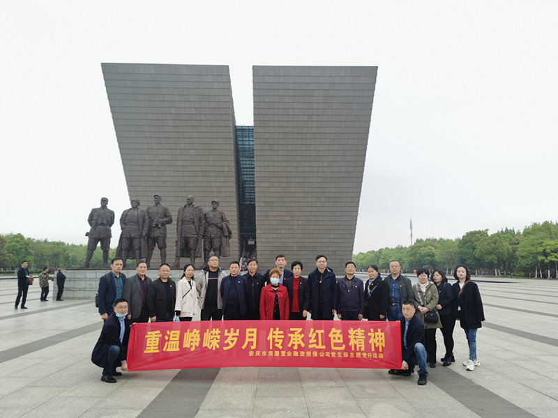 4月25日,安慶市房屋置業(yè)融資擔(dān)保公司黨支部組織全體黨員到渡江戰(zhàn)役紀(jì)念館,把黨史學(xué)習(xí)教育的課堂搬到這里,開展“重溫崢嶸歲月、傳承紅色精神”主題黨日活動(dòng)。渡江戰(zhàn)役紀(jì)念館坐落在巢湖之濱,以基本展陳《百萬雄師過大江》為主線,共展出珍貴歷史照片、文物、油畫、雕塑2500余件,再現(xiàn)了革命艱難歷程、軍民團(tuán)結(jié)一心的恢宏篇章。通過一件件歷史文物、一幅幅革命影像,為我們?cè)佻F(xiàn)了軍民奮勇渡江作戰(zhàn)的壯闊畫面。活動(dòng)期間,再次重溫了入黨誓詞,部分黨員還分別進(jìn)行了戰(zhàn)役介紹、戰(zhàn)役中的小故事、觀后感活動(dòng)。不忘歷史,開創(chuàng)未來,通過追尋渡江戰(zhàn)役英烈們的足跡,牢記革命先烈浴血奮戰(zhàn)、不怕犧牲的歷史,感悟初心使命,汲取奮斗力量,為推進(jìn)置業(yè)擔(dān)保國(guó)有企業(yè)改革發(fā)展開拓新局面。活動(dòng)還邀請(qǐng)了局紀(jì)檢組、機(jī)關(guān)黨委、企指科和股權(quán)單位相關(guān)負(fù)責(zé)人參加。